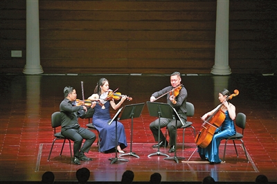 作為開(kāi)幕音樂(lè)會(huì),當(dāng)晚,伴著晚風(fēng)與弦樂(lè),來(lái)自中央音樂(lè)學(xué)院的無(wú)極四重奏,給現(xiàn)場(chǎng)觀眾帶來(lái)美好的聽(tīng)覺(jué)享受。抑揚(yáng)頓挫的海頓C大調(diào)第五十七弦樂(lè)四重奏、極富變化的貝多芬F大調(diào)第七弦樂(lè)四重奏“拉祖莫夫斯基”,古典韻味在弦間流淌,直達(dá)每個(gè)因音樂(lè)而雀躍的細(xì)胞,無(wú)極四重奏用高水準(zhǔn)的演奏和沉穩(wěn)的臺(tái)風(fēng)向大家“打樣”,讓學(xué)員們對(duì)接下來(lái)的學(xué)習(xí)充滿期待。