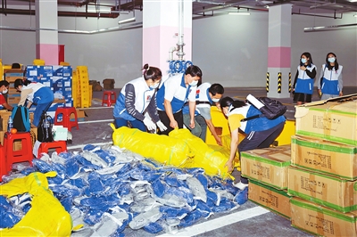 20日上午,在格力明珠人才公寓5棟“三區(qū)兩通道”的非污染區(qū),來自華發(fā)會展行政公寓的王曉勇正在忙碌著?!坝幸恍┛腿诵枰徺I藥品,或者孩子需要提供學習用品,我們都會在防疫要求范圍內(nèi),通過外賣配送等方式,盡量為客人解決后顧之憂。”
